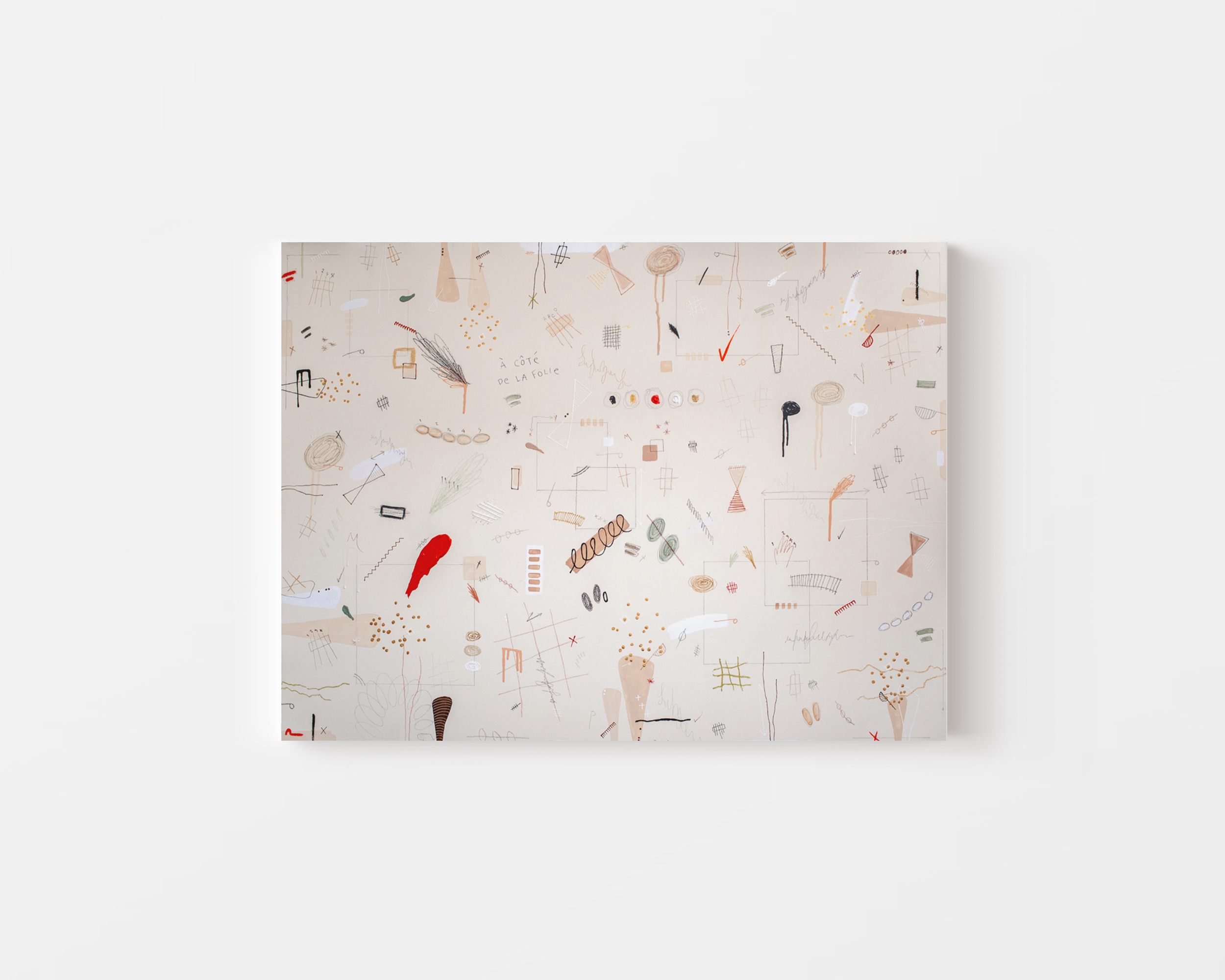 À Coté de la FolieMaterials: Oil pastel, acrylic, graphite & thread on stretched canvasDimensions: 30” x 40” x 1.5” 2024