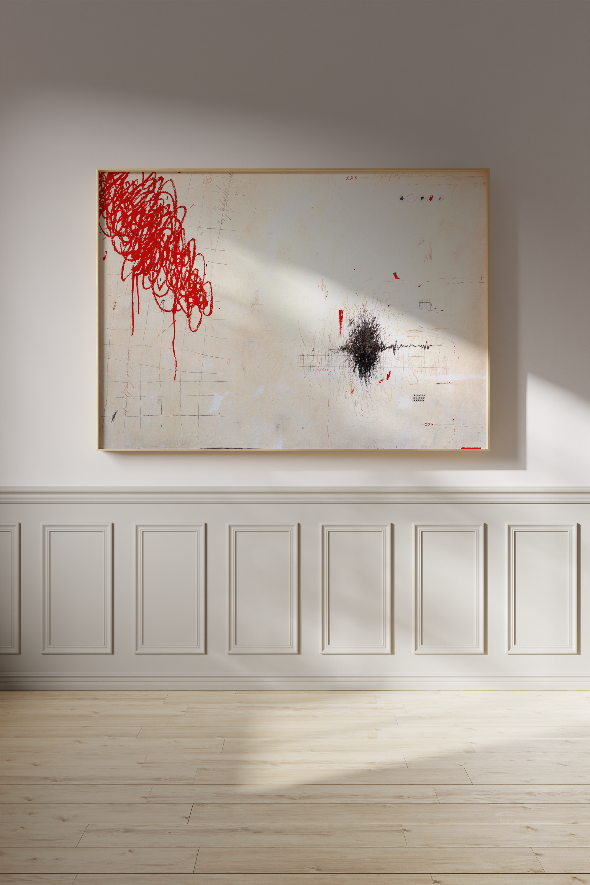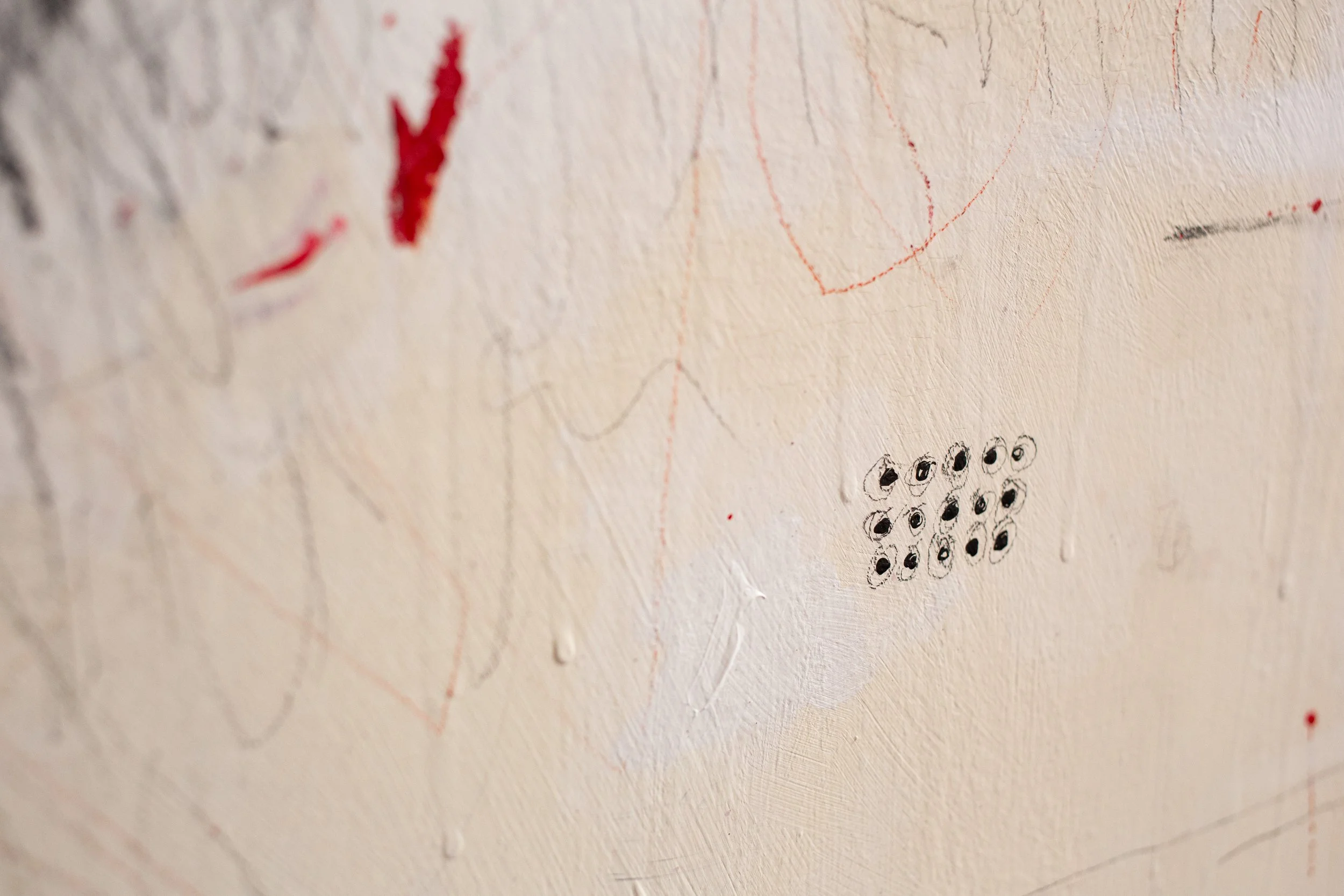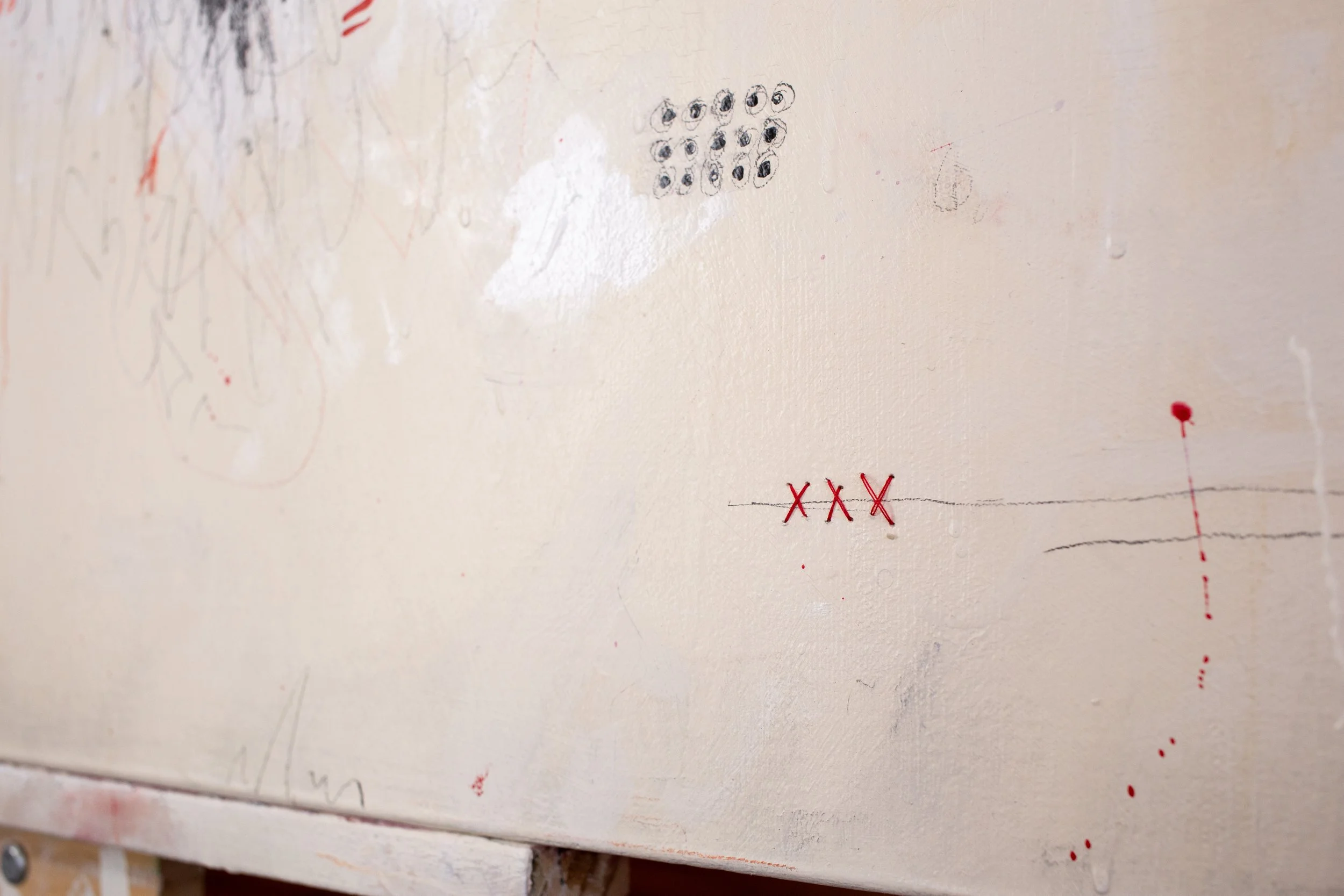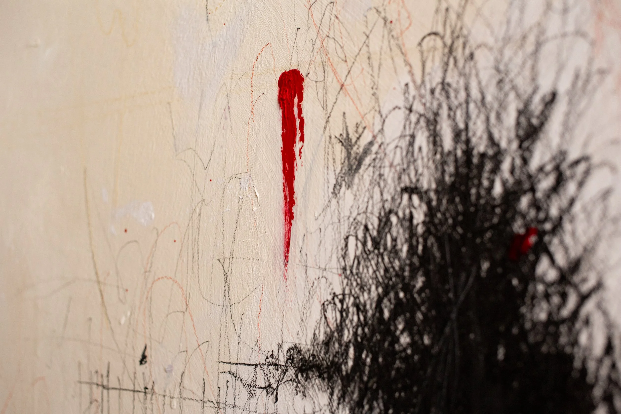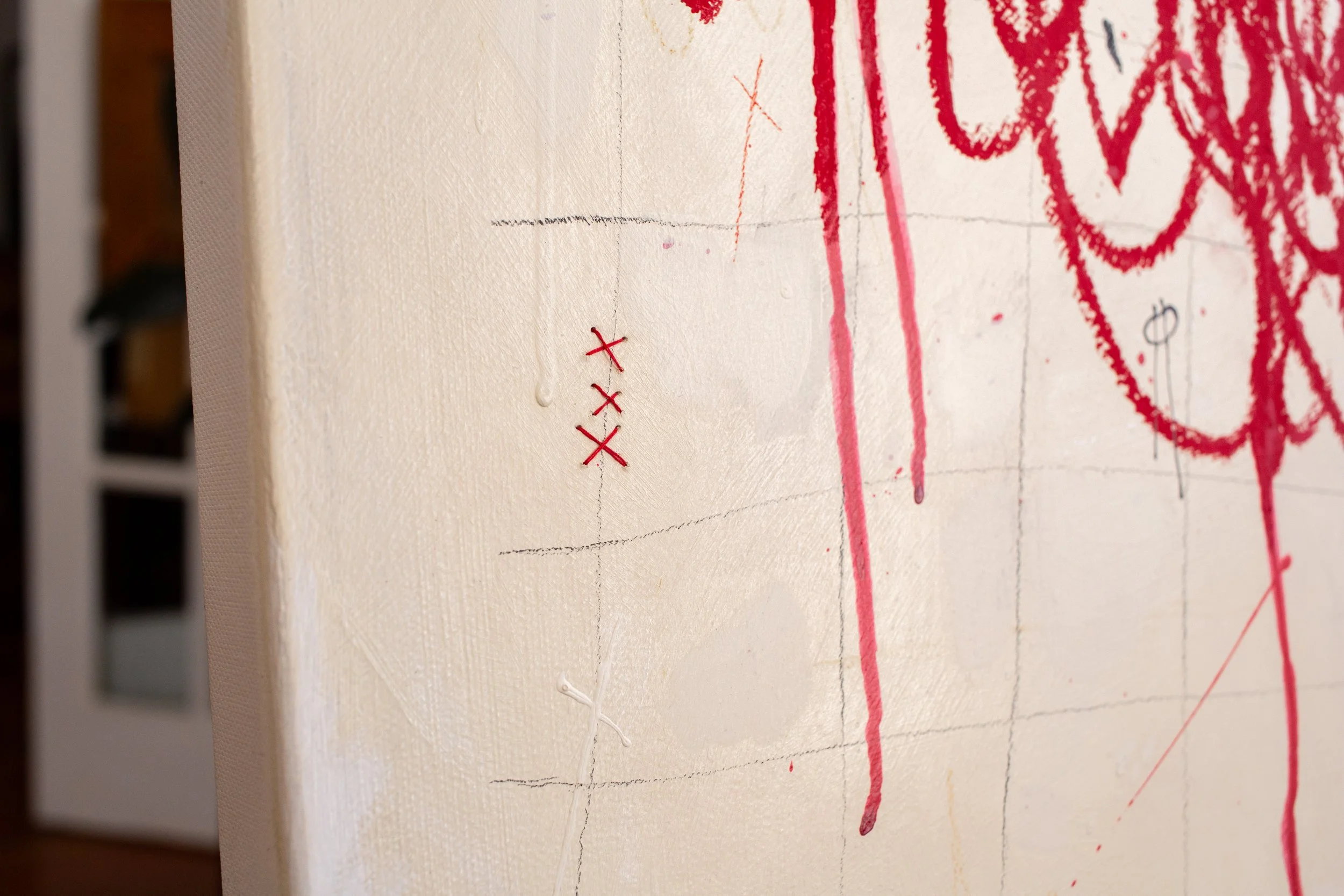 VesuviusMaterials: Oil pastel, acrylic, graphite & thread on stretched canvasDimensions: 30” x 40” x 1.5” 2024